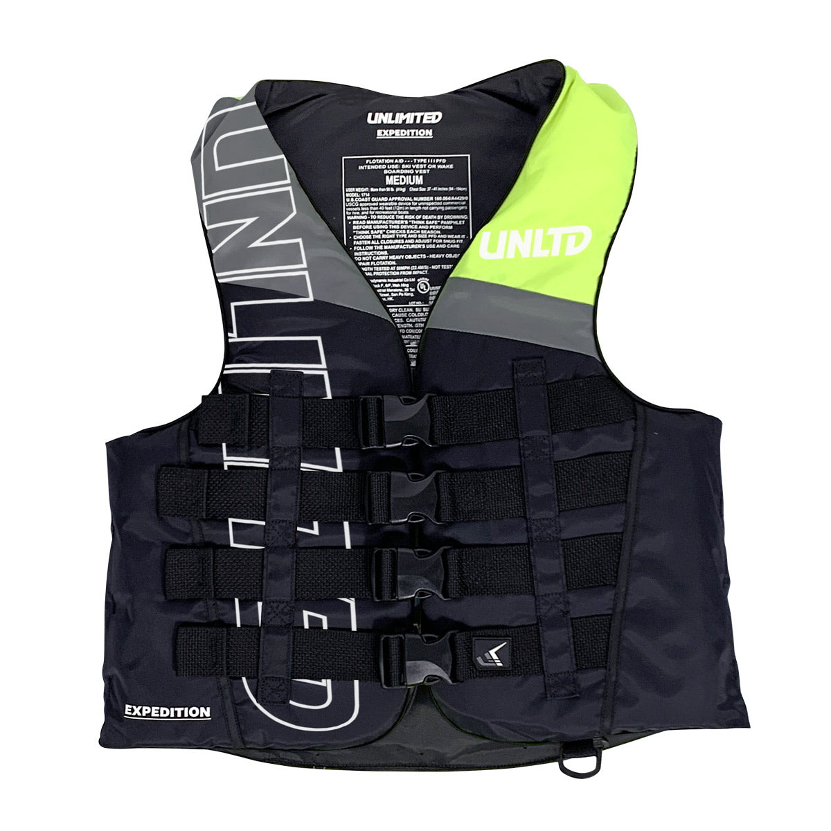 توفر سترة النجاة المصنوعة من النايلون ملاءمة مريحة وغير ضاغطة، مما يضمن ارتداءً مريحاً لفترات طويلة. صُممت هذه السترة لتوفير حرية الحركة، وهي مثالية لجلسات الرياضات البحرية الطويلة.عن UNLIMITED رحلة استكشافية